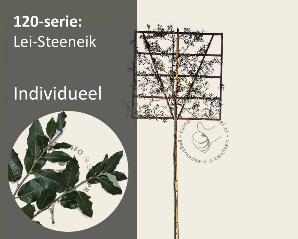 De Lei-Quercus ilex is een groenblijvende leiboom. Het blad is leerachtig en heeft een zilvergrijze onderzijde. Dit geeft de boom haar karakteristieke uitstraling. De steeneik komt van nature uit het Middellandse zeegebied. In België en Nederland is de boom matig winterhard en houdt van een beschutte standplaats. Een stadstuin of patiotuin zijn goed geschikte plaatsen voor deze leiboom. Deze boom is ook bestand tegen zilte zeeluchten en kan dus ook goed worden toegepast in het kustgebied.