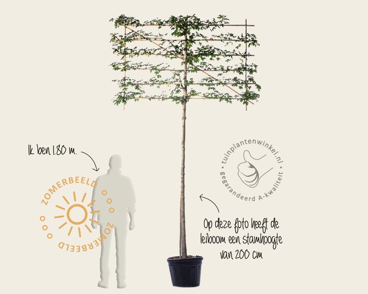De Veldesdoorn is een hele gemakkelijke Esdoornsoort en daardoor prima geschikt als leiboom. De Lei-Veldesdoorn heeft een mooie, fijne bladstructuur en kan het best als haag geschoren worden. Knip de Lei-Acer campestre 'Elsrijk' een keer vaker in het seizoen voor een superstrak resultaat. De dichte takkenstructuur geeft ook in de winter veel privacy en kleine zangvogeltjes nestelen er graag in. De Lei-Veldesdoorn krijgt een gele herfstkleur die lang aanhoudt. Deze soort is een van de eerste die in het voorjaar in blad komt. Als u privacy zoekt en een groot blad niet mooi vindt, dan is de Lei-Veldesdoorn een prima optie, de Lei-Haagbeuk zou een andere goede mogelijkheid zijn. De Lei-Veldesdoorn is een van de leibomen uit ons uitgebreide assortiment.