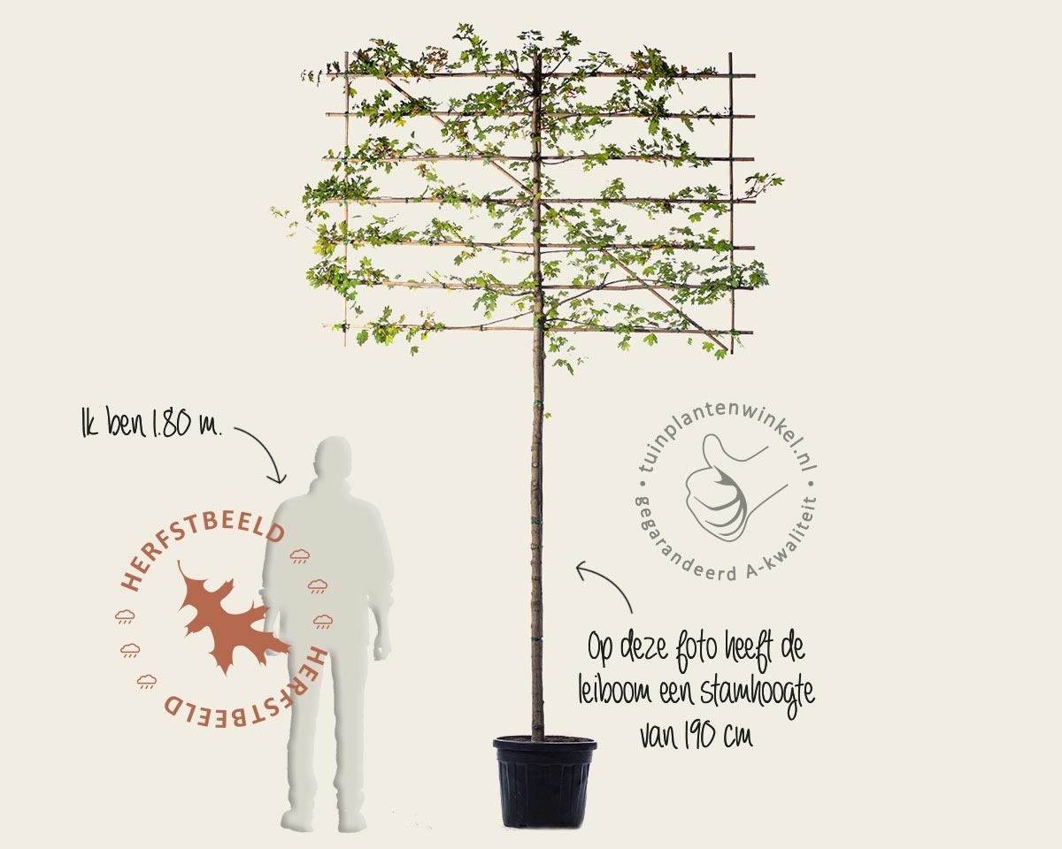 De Veldesdoorn is een hele gemakkelijke Esdoornsoort en daardoor prima geschikt als leiboom. De Lei-Veldesdoorn heeft een mooie, fijne bladstructuur en kan het best als haag geschoren worden. Knip de Lei-Acer campestre 'Elsrijk' een keer vaker in het seizoen voor een superstrak resultaat. De dichte takkenstructuur geeft ook in de winter veel privacy en kleine zangvogeltjes nestelen er graag in. De Lei-Veldesdoorn krijgt een gele herfstkleur die lang aanhoudt. Deze soort is een van de eerste die in het voorjaar in blad komt. Als u privacy zoekt en een groot blad niet mooi vindt, dan is de Lei-Veldesdoorn een prima optie, de Lei-Haagbeuk zou een andere goede mogelijkheid zijn. De Lei-Veldesdoorn is een van de leibomen uit ons uitgebreide assortiment.