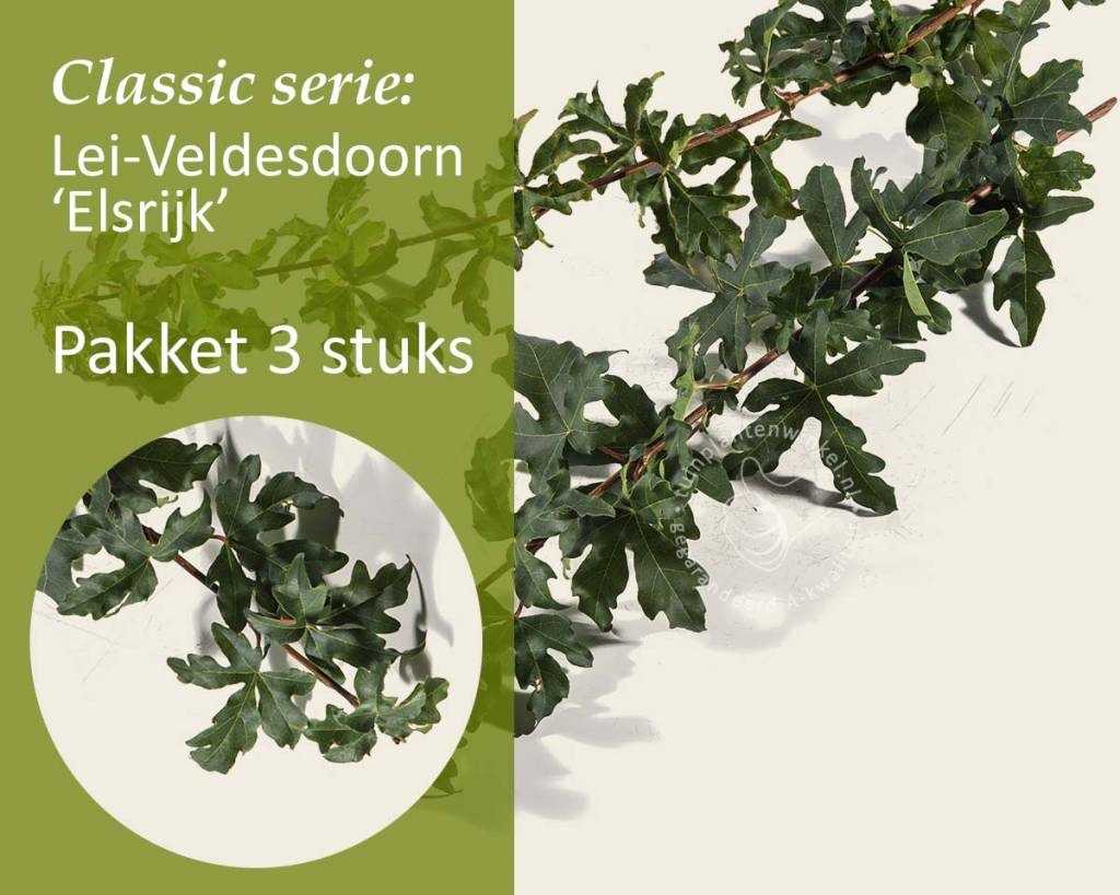 De Veldesdoorn is een hele gemakkelijke Esdoornsoort en daardoor prima geschikt als leiboom. De Lei-Veldesdoorn heeft een mooie, fijne bladstructuur en kan het best als haag geschoren worden. Knip de Lei-Acer campestre 'Elsrijk' een keer vaker in het seizoen voor een superstrak resultaat. De dichte takkenstructuur geeft ook in de winter veel privacy en kleine zangvogeltjes nestelen er graag in. De Lei-Veldesdoorn krijgt een gele herfstkleur die lang aanhoudt. Deze soort is een van de eerste die in het voorjaar in blad komt. Als u privacy zoekt en een groot blad niet mooi vindt, dan is de Lei-Veldesdoorn een prima optie, de Lei-Haagbeuk zou een andere goede mogelijkheid zijn. De Lei-Veldesdoorn is een van de leibomen uit ons uitgebreide assortiment.