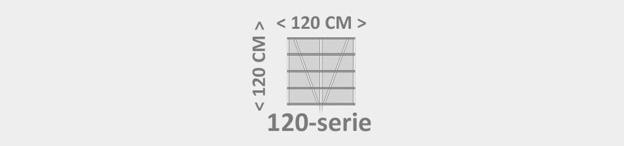 De leibomen uit de 120-serie hebben een rekgrootte van 120 x 120 centimeter. Het betreft hier houten frames in tegenstelling tot onze leibomen uit de Basic-, Classic-, Scherm- en Small-serie met frame van bamboe.