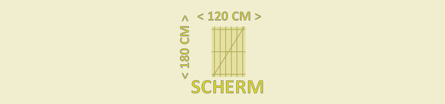 Bij een leischerm is het frame of rek gekanteld en op een hoogte van 50 centimeter in de boom aangebonden. Het frame heeft een afmeting van 110 x 180 centimeter (bxh). In totaal is een boom uit deze leischerm-serie ongeveer 230 centimeter hoog.