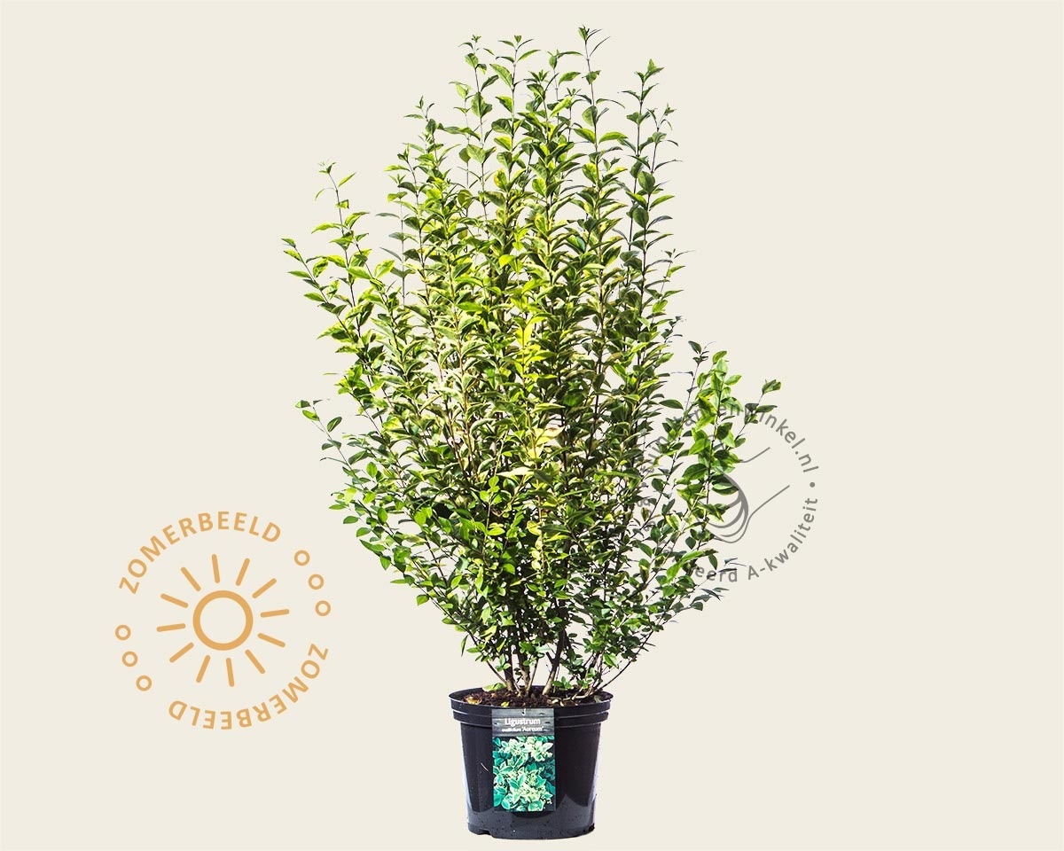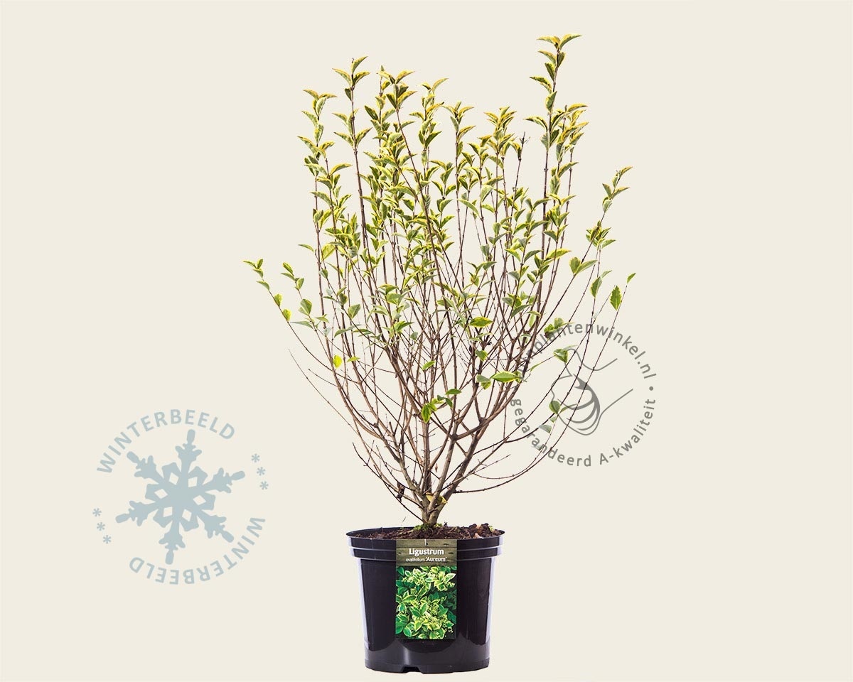 Hoe kouder het wordt hoe meer de Ligustrum ovalifolium 'Aureum' het blad zal laten vallen. Maar bij normale winters blijft de haag groen. De bonte haagliguster kan zowel voor een haag gebruikt worden en als losse struik in de tuin. Snoei is wel noodzakelijk als u de haag mooi strak wil houden.