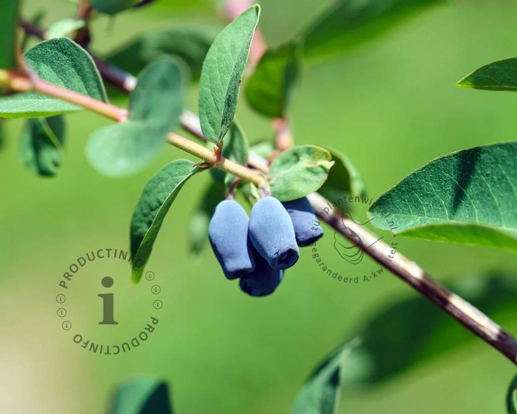 Wat onbekender onder de bessenstruiken is de Honingbes. Lonicera kamtschatica 'Fialka' bloeit met geelwitte bloemen en geeft een grote oogst met langwerpige, blauwe bessen. Niet iedereen vindt de bessen lekker om zo te eten. De bessen worden daarom meestal verwerkt in de jam, als sap of compote. De bessen zijn te plukken in juli - augustus.