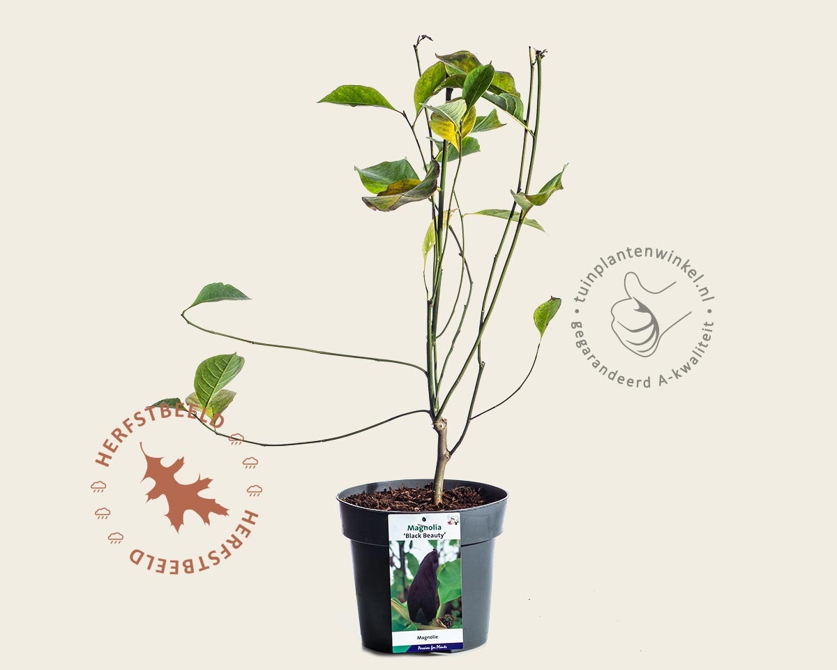 Magnolia ‘Black Beauty’ is een opvallende beverboom die bekend staat om zijn opvallend donkere bloei met diep donkerpaarse bloemen. In sommige bloemen zijn ook gele tinten zichtbaar, wat zorgt voor een bijzonder kleurcontrast naast het wit. De struik of kleine boom vormt een mooi, opgaand gestel met stevig, glanzend groen blad. In mei juni bloeit Magnolia 'Black Beauty' met grote, tulpvormige bloemen die aan de buitenkant donker paarsrood zijn en van binnen lichter kunnen tonen. Omdat de bloemen vaak al verschijnen als er nog weinig blad aan de takken zit, vallen ze extra op. Magnolia 'Black Beauty' kan na 10 jaar een hoogte van 400 cm bereiken. De plant is goed winterhard en daardoor zeer geschikt voor het Nederlandse klimaat. Magnolia 'Black Beauty' is verkrijgbaar op tuinplantenwinkel. Een leuk weetje: Magnolia’s werden al in oude botanische tuinen als “exotische” pronkstukken aangeplant, lang voordat ze in gewone tuinen terechtkwamen.