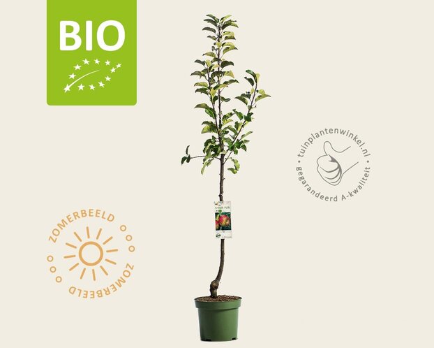 De Malus domestica 'Topaz' BIO is een bijzondere laagstam appelboom die bekend staat om zijn sappige en smaakvolle appels. Deze biologisch geteelde appelboom is een uitstekende keuze voor tuinliefhebbers die op zoek zijn naar een duurzame en milieuvriendelijke optie. Met zijn compacte groeiwijze is deze laagstam appelboom perfect voor kleinere tuinen, terrassen of zelfs in grote potten.