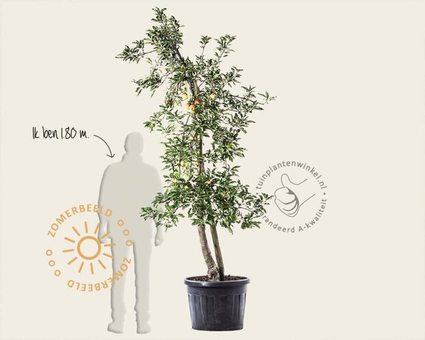 De oude appelbomen komen vanuit een boomgaard en hebben lange tijd dienst gedaan om zoveel mogelijk appels te produceren. Hierdoor ziet de stam er wat doorleefd uit. Er is op de boomgaard aan een kant van de stam een kettingzaagsnede gemaakt zodat de boom meer bloesem (en dus vruchten) ging aanmaken. Door de sterke groei is aan de andere kant van de stam meestal een groeischeur of barst ontstaan. Dit kan er wat vreemd uitzien als leek maar dit is dus 'normaal' voor deze oude appelbomen. Hou hier dus rekening mee als u deze oude appelboom besteld.