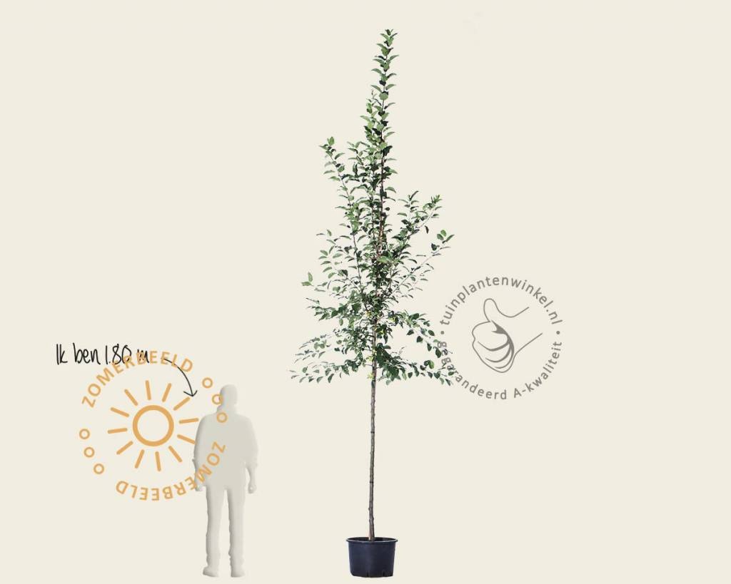Antwoord: De Malus Red Sentinel, sierappel boom is verkrijgbaar in verschillende maten ook in hoogstam. Als men de Rode sierappel als hoogstam boom gaat planten dient men er rekening mee te houden dat men deze plant met boompalen.