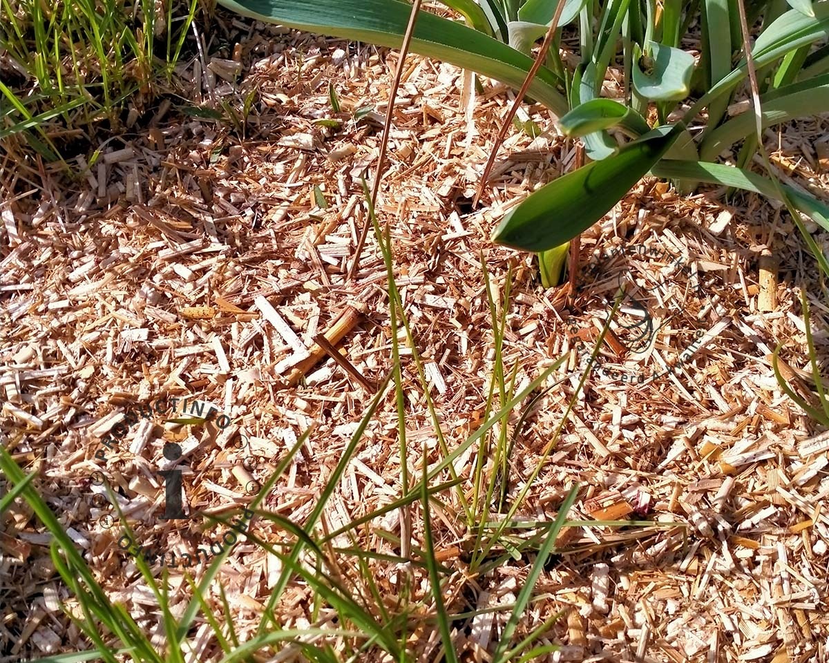2. Verdeel het Miscanthus strooisel gelijkmatig over de aarde in een laag van 3 tot 5 cm.