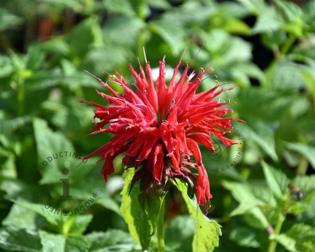 De opvallende rode bloemen verschijnen in de maanden juli augustus. Omdat de bloemen op het uiteinde van de stengel staan, noemen we dit eindstandige bloemen. De hele plant verspreidt een heerlijke geur. De opvallende rode bloemen lokken tal van insecten zoals bijen en vlinders, vooral door de aromatische geur.