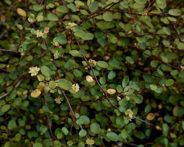 Bescherm Muehlenbeckia complexa in de winter met een laag bladeren. Snoei in het vroege voorjaar te lange takken terug en verwijder alle dode delen van de tuinplant. Geef bij langdurige droogte extra water.