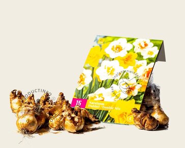 De Narcissus Double Mix is een mix van gele Narcissen en Narcissen met Wit-gele bloemen. Een mooie mix die het goed doet in een bloempot om op die manier het terras in het voorjaar op de fleuren.