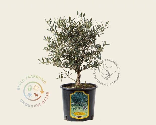 Op zoek naar een tuinplant met een mediterraanse sfeer? Dan is Olea europaea een goede keuze. Het blad is mooi grijsgroen van kleur. Een Olijf is bladhoudend, dus in de winter ook mooi om te zien. De bloemen zijn crème wit van kleur en ze groeien in trossen aan de olijfboom. Olijven die in een pot komen staan, kan men in de pot plaatsen met noppenfolie. Mooi voor op een terras of in een patiotuin.