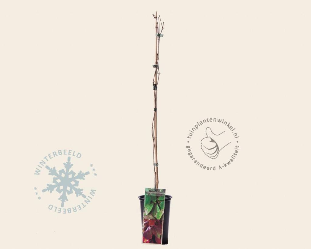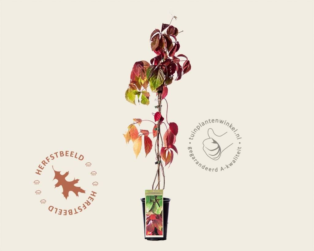 Wilde Wingerd is een schitterende snelgroeiende klimplant om snel een kale muur mee te maskeren. In de herfst tooit Parthenocissus quinquefolia (= vijfbladig) zich met een rode bladverkleuring. Dit spectaculaire beeld maakt dat de tuinplant bij sommigen ook wel eens de roodbladige klimop genoemd wordt. Parthenocissus quinquefolia engelmannii , in het Nederlands Wingerd genoemd, is een bladverliezende klimplant en groeit overal uitstekend en klimt vanzelf met zuignapjes aan hechtwortels; zorg dat deze wortels uw houtwerk niet beschadigen. De plant bloeit in juni-juli met onopvallende groene trosjes, die in de herfst uitgroeien tot blauwe besjes, die veel vogels aantrekken. Wilde Wingerd is goed winterhard, heeft een mooie, rode herfstverkleuring, waarna de bladeren afvallen.