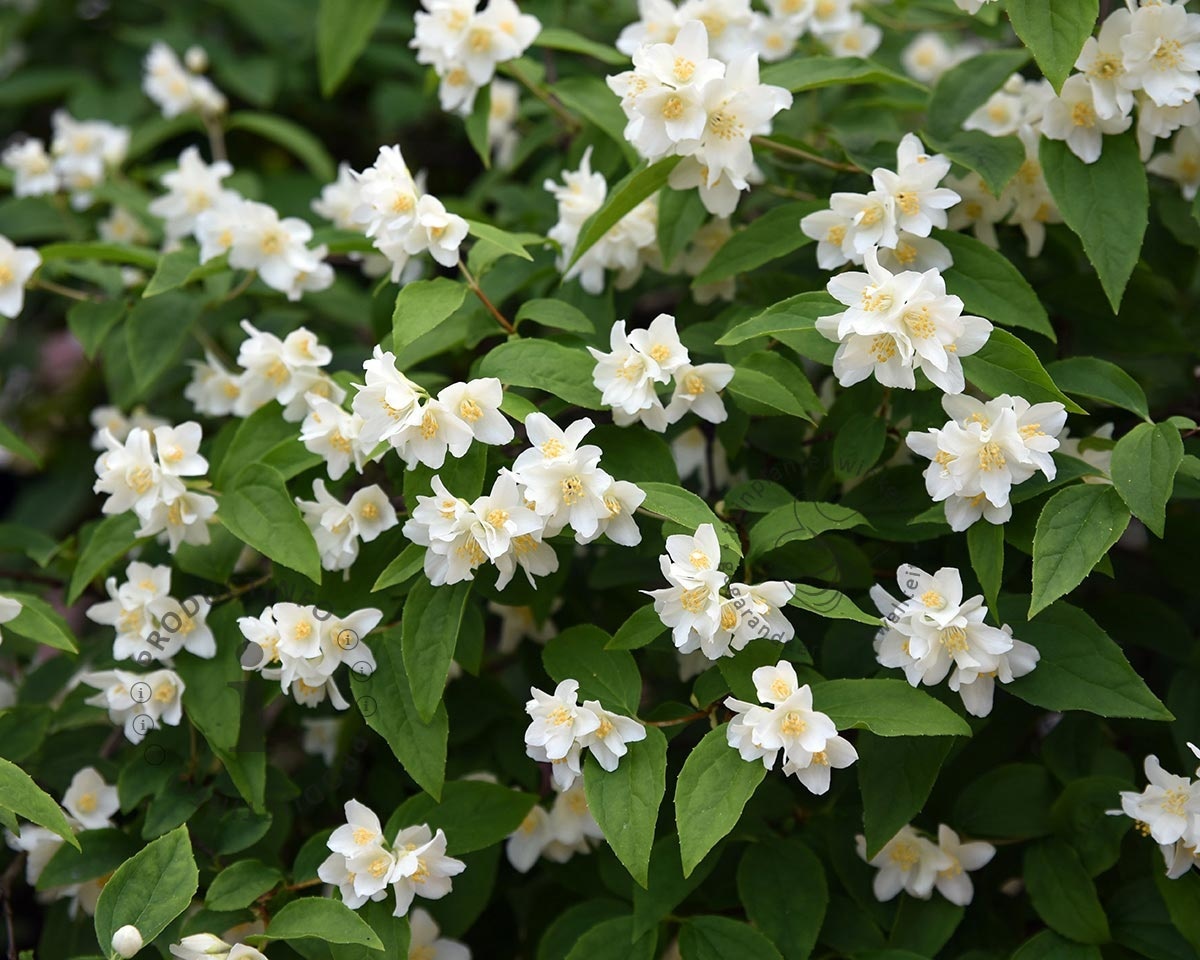 Philadelphus coronarius heeft een rechtopgaande bloeiwijze. Tijdens de bloei vormen zich trosjes witte bloemen, die heerlijk geuren en vlinders en bijen aantrekken. De Boerenjasmijn is afkomstig uit Zuid-Europa en Klein-Azië, maar er zijn ook Amerikaanse soorten. De tuinplant voldoet op iedere plaats in uw border en wordt zelfs als haag aangeplant. Ze is goed winterhard, maar bladverliezend.