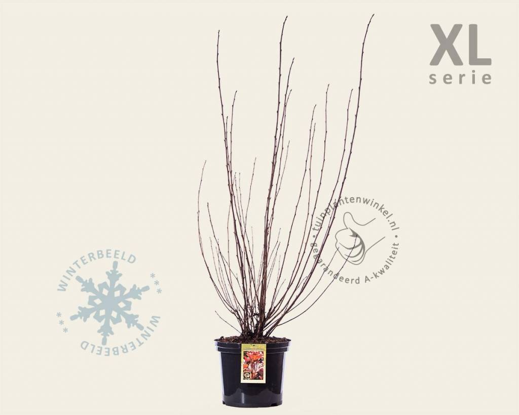 Physocarpus opulifolius 'Lady in Red' - XL is een meerstammige, compact opgroeiende heester, die in het voorjaar mooie, purperrode bladeren krijgt. De Blaasspirea krijgt in mei-juni rozewitte, geurende bloemen, die vlinders en bijen aantrekken en in het najaar uitgroeien tot bruinrode vruchtjes: Blaasspirea slaat op deze enigszins opgeblazen vruchtjes. Physocarpus opulifolius 'Lady in Red' is bladverliezend en winterhard en kan goed tegen luchtverontreiniging.