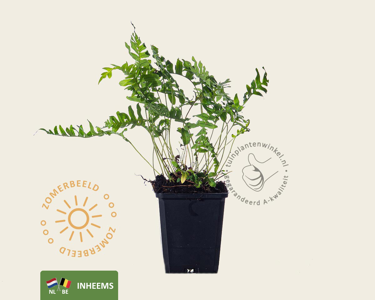 De Polypodium vulgare (Eikvaren) met een bodembedekkende groeiwijze is een laagblijvende varen met een decoratief samengesteld blad die in de breedte, wat meer als een tapijt groeit. De Polypodium vulgare is een inheemse varen en wordt niet hoger dan 25cm. De Polypodium vulgare is winterhard en groenblijvend. De Polypodium vulgare komt het beste tot zijn recht als bodembedekker bijvoorbeeld in een rotstuin en is één van de weinige varens die ook in de volle zon wil groeien.