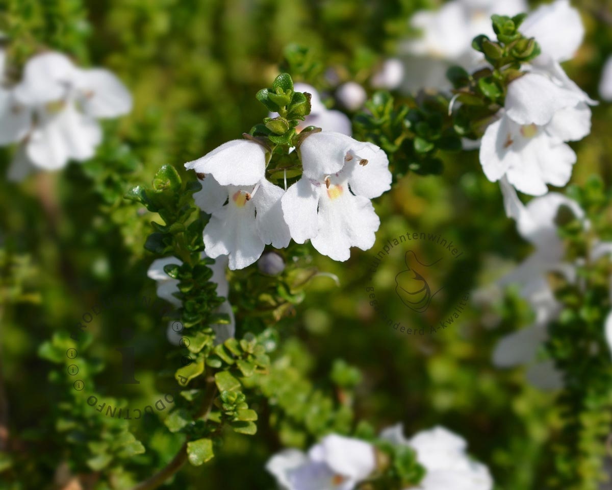 Prostanthera cuneata of Muntstruik met witte bloemen