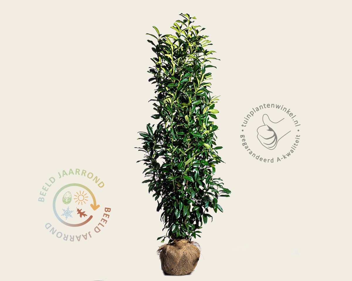 Prunus laurocerasus ‘Genolia’ is een moderne laurierkers met een zeer smalle, rechtopgaande groei. Deze opgaande groei maakt de plant bijzonder geschikt voor het creëren van compacte, hoge hagen. De donkergroene, glanzende bladeren hebben een mooie glans en geven de haag een verzorgde uitstraling; het zijn echte donkergroene bladeren die bijdragen aan een dichte, groene wand. Dankzij de compacte groeivorm is deze laurierkers geschikt voor zowel kleine als grote tuinen, waardoor hij breed toepasbaar is in verschillende tuinontwerpen. De praktische voordelen van de Prunus laurocerasus ‘Genolia’ zijn onder andere privacy, onderhoudsgemak en veelzijdigheid in gebruik. Bovendien is deze plant winterhard en bestand tegen koude winters. De naam ‘Genolia’ wordt vaak in verband gebracht met een Zwitserse herkomst; het ras is ontwikkeld als smalle, stevige haagplant voor krappe ruimtes.