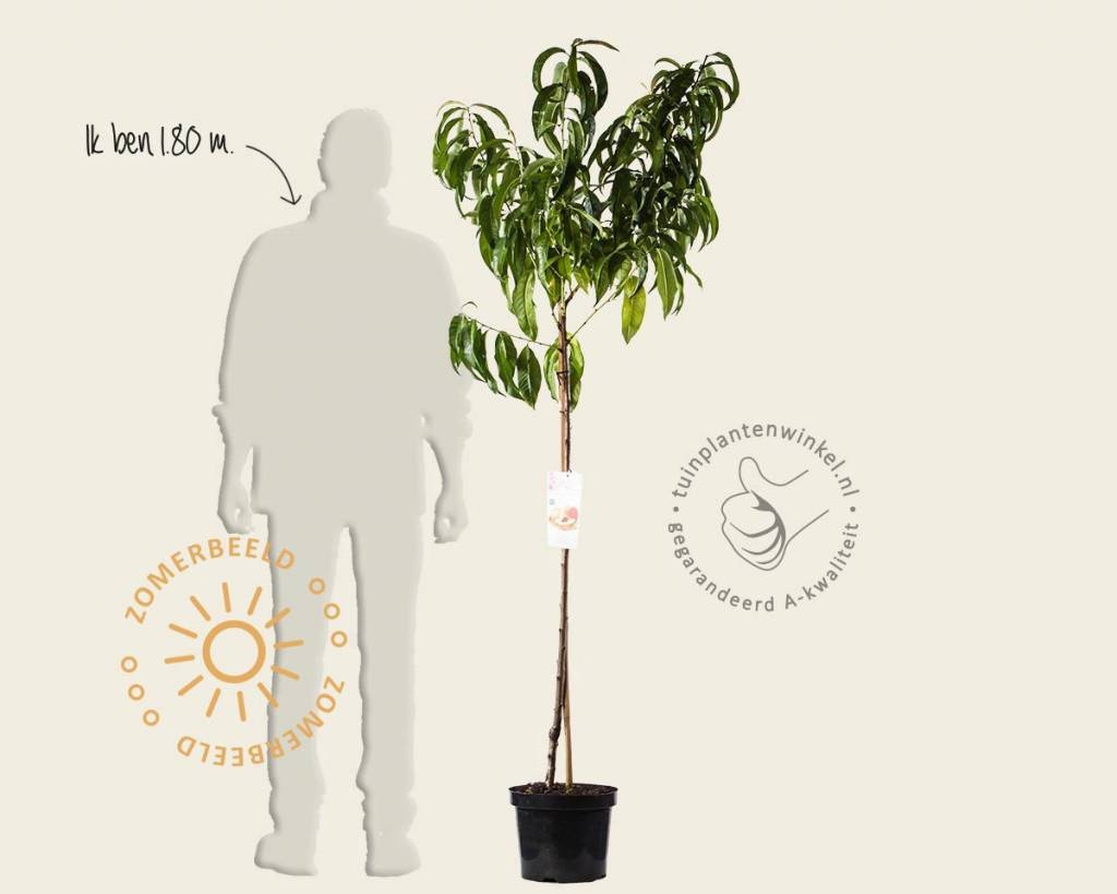 Prunus nucipersica 'Flavortop' - halfstam bloeit in februari - maart opvallend en uitbundig met dieproze bloemen, die uitgroeien tot rode, zoete sappige nectarines, met stevig geel vruchtvlee, die in augustus te oogsten zijn. Nectarine 'Flavortop' verliest in de winter zijn bladeren en is redelijk vorstbestendig.