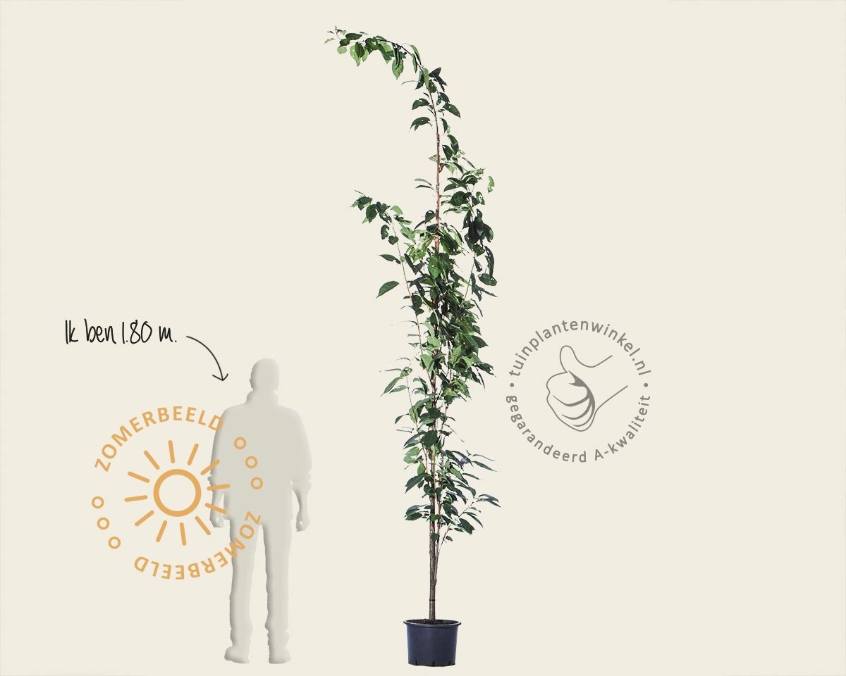 Deze sierkers is ook verkrijgbaar als hoogstam. In dat geval is de Prunus serrulata 'Amanogawa' geënt op een onderstam en begint hij hoger met vertakken. Door zijn compacte, zuilvormige groei neemt hij weinig ruimte in. Let er wel op dat hij het best tot zijn recht komt in de volle grond en niet goed tegen natte of slecht doorlatende bodem kan.