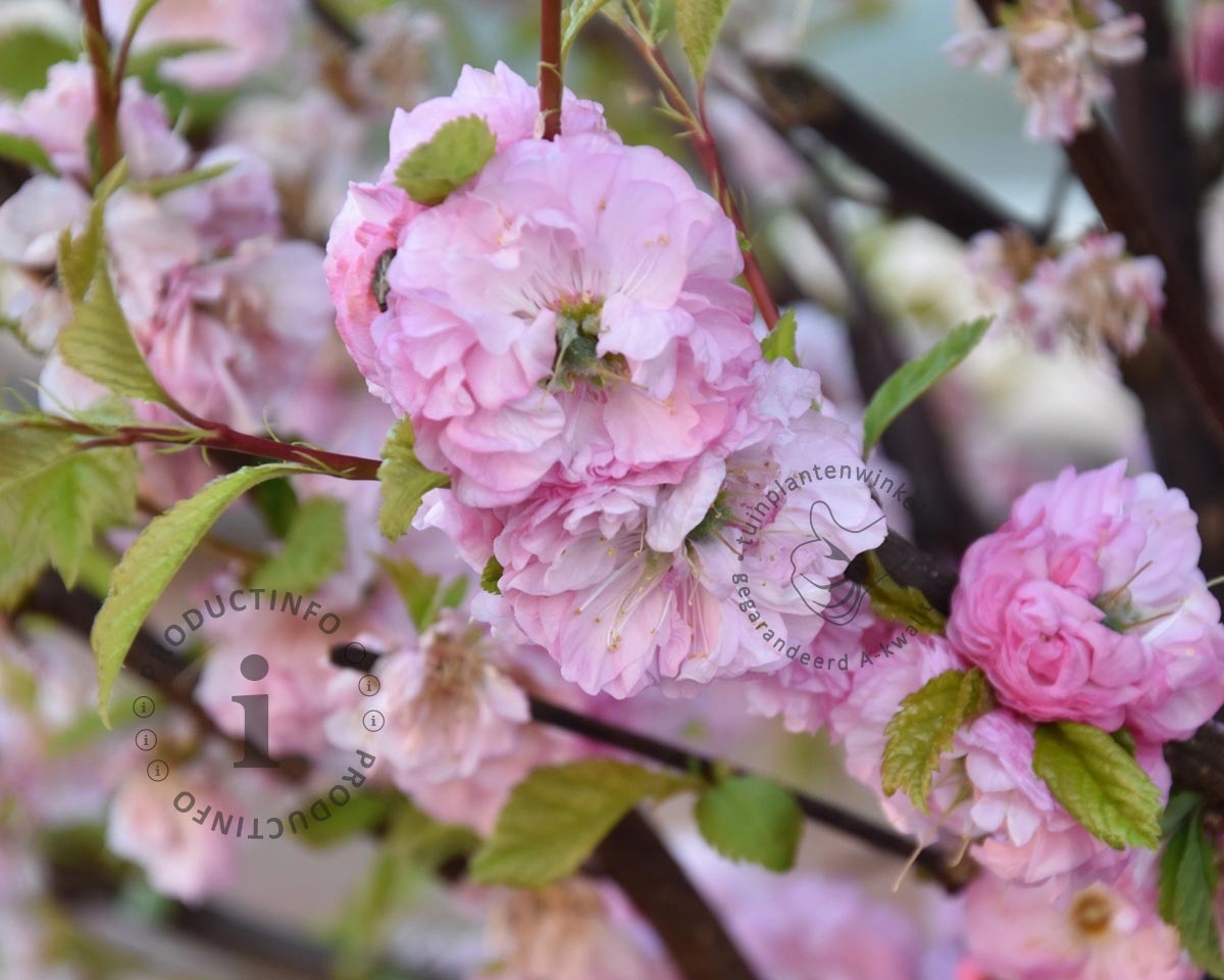 Prunus triloba geeft in het voorjaar over de gehele tak vele roze bloemen. De bloemen ontstaan eerst en daarna komt het blad pas volledig aan de tuinplant; een zogenaamde naaktbloeier. Het Amandelboompje is goed te gebruiken in een een kleinere tuin maar ook in een pot of bak voor op het terras of balkon.