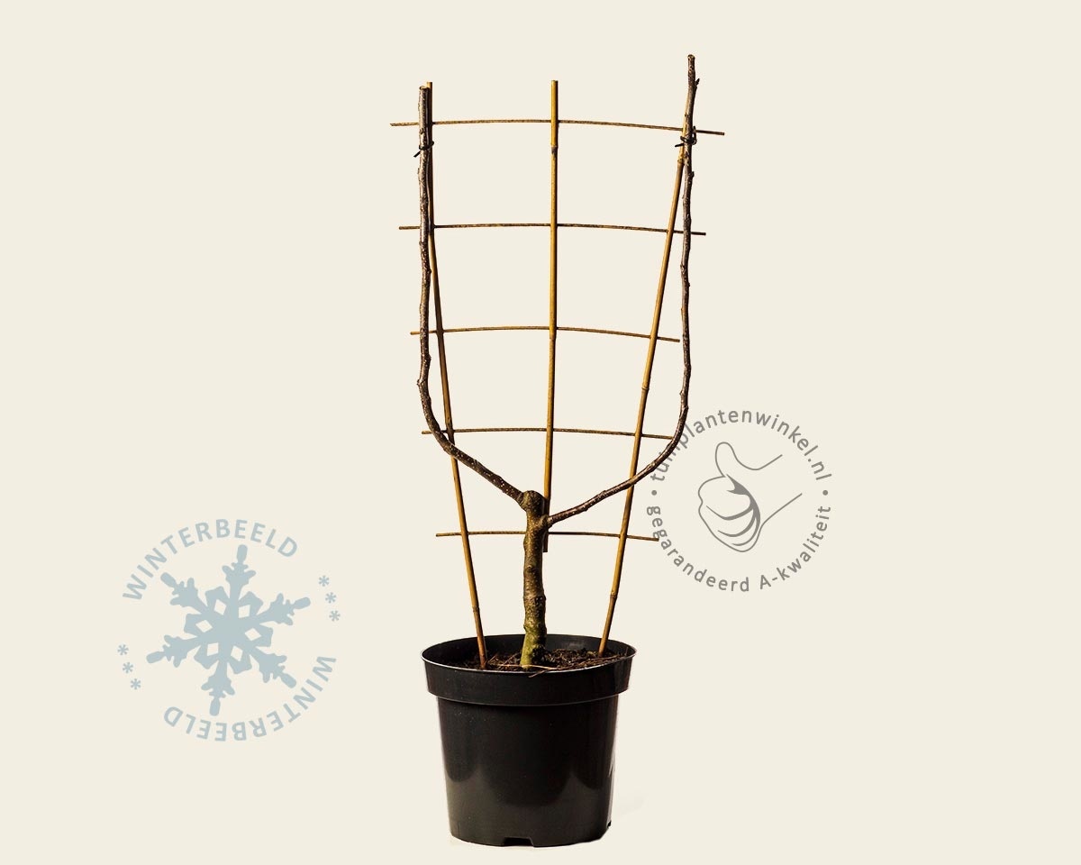Wanneer er geen ruimte is voor een gewone fruitboom, kan een U-vorm gekweekte leifruitboom een goede oplossing zijn om toch te kunnen genieten van eigen gekweekt fruit! Een U-vorm heeft maar weinig ruimte nodig. Deze Handpeer bloeit van april t/m mei met witte bloemen en daaruit vormen zich zoete peren. Pyrus 'Williams' is een bladverliezende tuinplant.