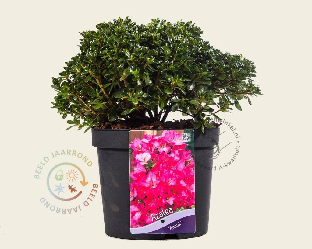 Strooi in het voorjaar nog eens extra tuinturf rondom de plantvoet van de Rhododendron Azalea 'Anouk' voor het behoud van de zurige bodemgesteldheid. Japanse azalea's zijn goed te snoeien en zodoende nog compacter te houden. De snoei vindt plaats net na de bloei in mei. Snoei daarbij alleen de jonge takken terug; op oud hout loopt de tuinplant minder fraai uit en kan het jaren duren voordat de plant weer mooi van vorm is.