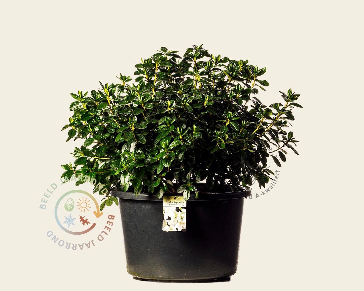 De Japanse azalea is directe familie van de Rhododendrons. Ze groeien langzaam en blijven compact en laag van vorm. Rhododendron Azalea 'Schneewitchen' kan meer zon verdragen dan de 'gewone' Rhododendron. Tijdens de bloei krijgt deze soort witte bloemen.