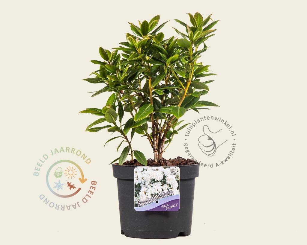 Rhododendron 'Dora Amateis' is een dwergvariant. Deze soorten groeien langzaam en blijven compact en laag van vorm. De tuinplant komt het beste tot zijn recht op een schaduwplekje in de kleinere border. Tijdens de bloei krijgt de Dwerg rododendron witte bloemen. De plant is vorstbestendig en behoudt in de winter zijn bladeren.