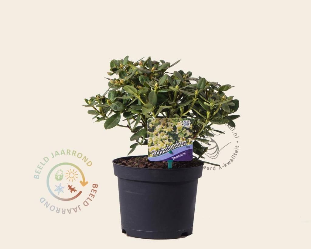 Rhododendron 'Shamrock' is een mooie mini-rododendron met bleek-gele, trosvormige bloemen in het voorjaar. De Dwerg rododendron blijft zeer compact en is dus ook zeker geschikt voor de kleinere tuin. Het bonsai-karakter maakt het ook tot een geliefde tuinplant in Japanse tuinen. De tuinplant staat het liefst in de (half)schaduw en is daarom ook geschikt als onderbeplanting bij hogere bomen en struiken.