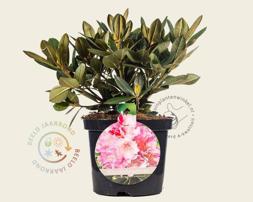 Rhododendron yakushimanum 'Dreamland' is een lichtroze, bloeiende tuinplant. De Rhododendron yakushimanum soorten zijn heel sterk en hebben een compacte groeiwijze. Ze groeien in zure grond in de (half-)schaduw; niet in de volle zon. Ze zijn niet geschikt voor klei- of lössgrond. De tuinplant is vorstbestendig en behoudt in de winter zijn bladeren.