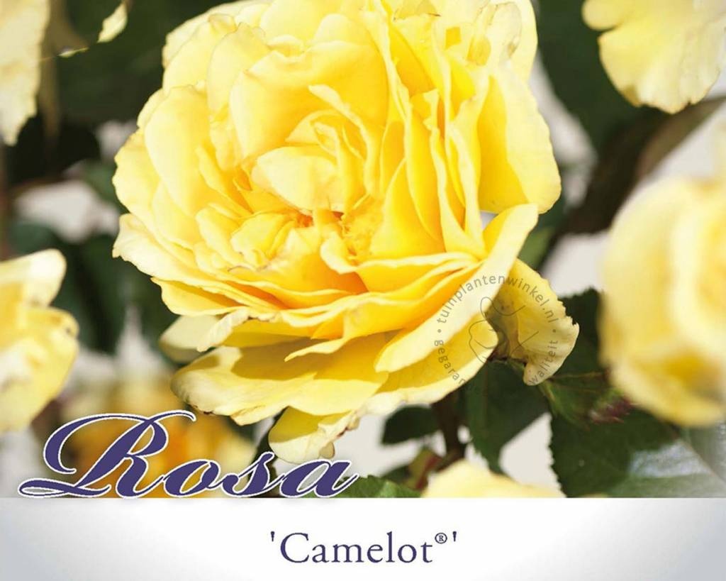 De struikroos 'Camelot' is een selectie van de veredelaar Harkness (Harknessroos / Harknessrozen). De roos wordt in Engeland verhandeld onder de naam Rosa 'City Livery'. De roos heeft zachtgele bloemen met een fruitige geur. De rozen staan in enkelvoud of in kleine groepen aan stevige stengels. De roos is een van de vroegst bloeiende struikrozen. Ze bloeit doorgaans vanaf mei/juni tot aan oktober. Knip de oude verwelkte bloemen terug zodat de roos blijft bloeien. Snoei de struikroos in maart terug tot een hoogte van ongeveer 15 centimeter voor het beste Resultaat.