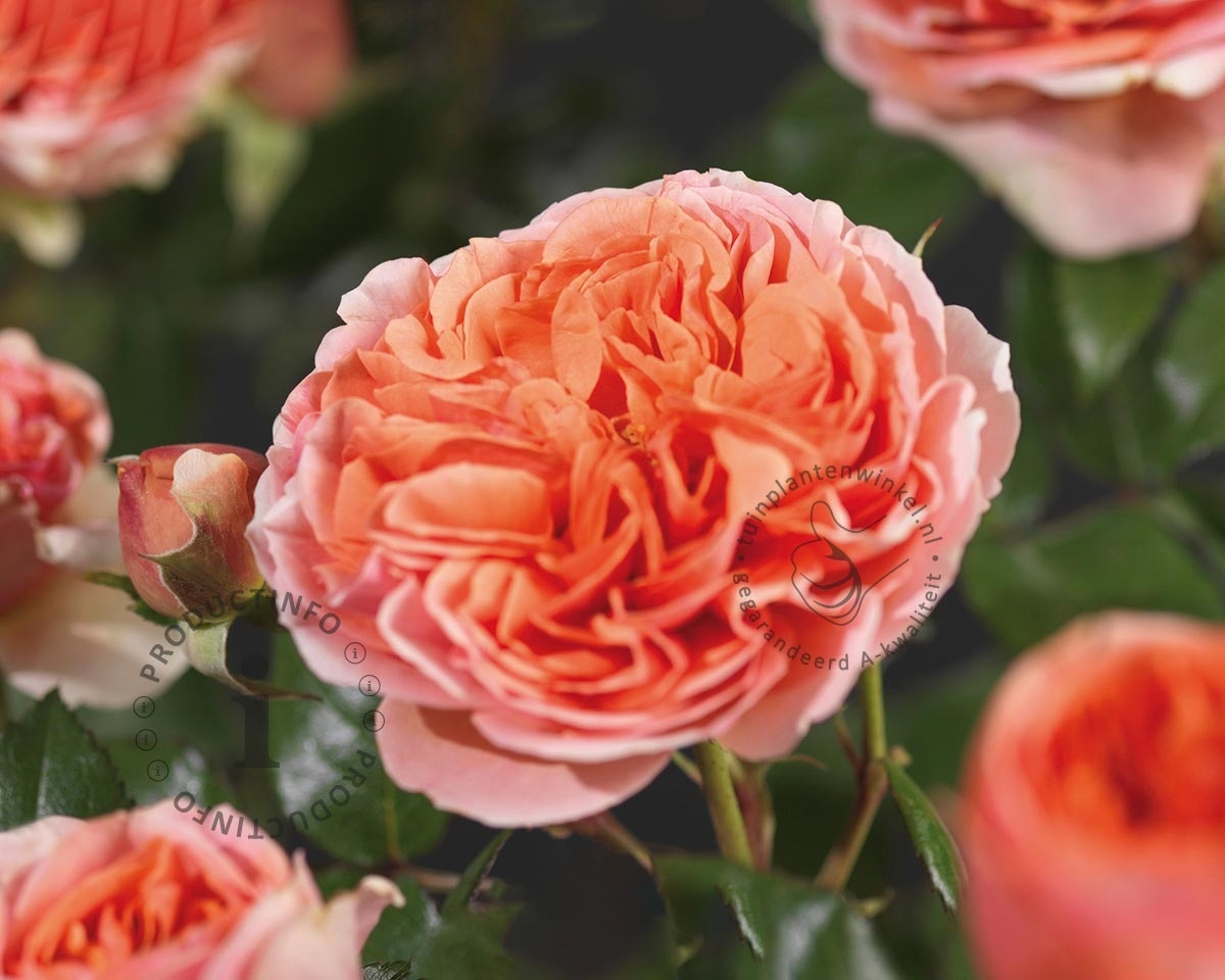 De Rosa 'Chippendale' heeft wel wat weg van een Engelse roos. De geur is iets minder sterk maar mag er nog steeds zijn. Het uiterlijk van de sterk gevulde bloemen komt aardig overeen. De grootbloemige roos hebben een grootte van 5 à 10 centimeter. Opvallend is de zalmoranje kleur. De rozen hebben een vrij afgeplatte vorm en blijven lang goed. De bloei duurt van juni tot aan oktober. Knip de stengels met verwelkte rozen deels terug voor een goed nabloei. De Rosa 'Chippendale bereikt een hoogte van ongeveer 60 centimeter en blijft daarmee erg compact voor een grootbloemige roos. Het blad is ijzersterk en goed resistent tegen ziektes. Snoei deze struikroos in maart terug tot een hoogte van ongeveer 15 centimeter.