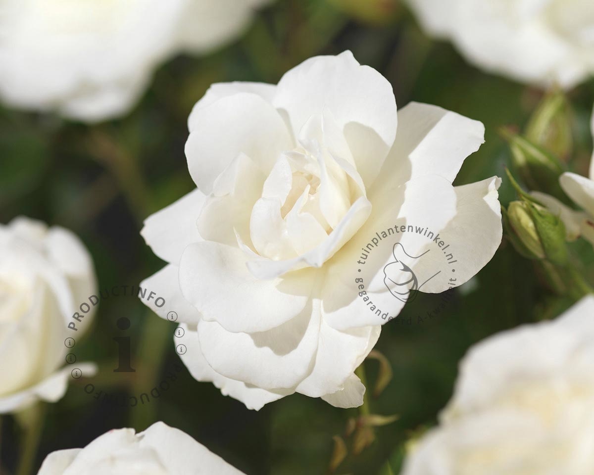 Heeft klimroos 'Climbing Iceberg' zuiverwitte halfgevulde rozen?