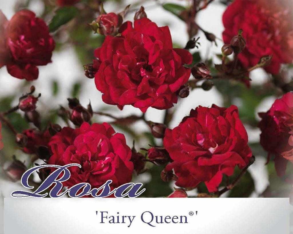 De rosa 'Fairy Queen' is een selectie uit de bekende Fairy roos. De 'Fairy Queen' bloeit met rode bloemen maar deelt voor de rest in de eigenschappen van de 'The Fairy'. Dat betekent een uitbundige én lange bloei van juni tot aan oktober. Deze rozensoort is erg gezond en heeft dus weinig last van ziekten en plagen. De kleine gevulde bloemen verschijnen in trossen. Rosa 'Fairy Queen' bloeit ook zonder te snoeien in de zomer goed door. Alleen in maart snoeit u deze struikroos kort terug. De hoogte van deze struikroos is ongeveer 40 centimeter.