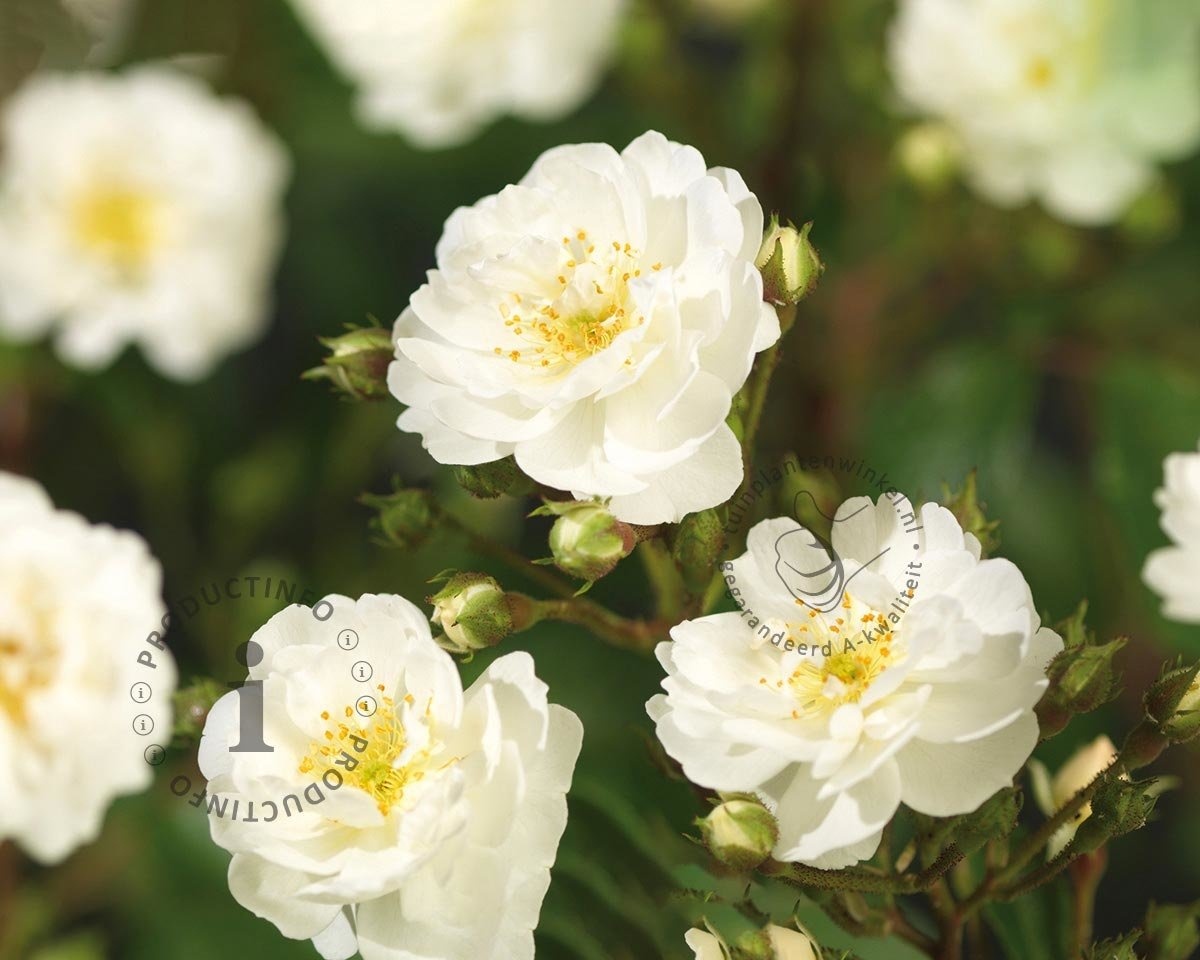 e Ramblerroos 'Guirlande d'Amour' is een gezonde rambler roos. Alleen vanwege de naam verdient deze roos een plek in uw tuin. De bloemenpracht is erg rijk. De hoofdbloei valt in de zomer met een nabloei richting het najaar. Deze rambler roos bloeit daarmee langer dan veel soortgenoten. De hoofdbloei is ronduit spectaculair te noemen. Ook de geur van de bloemen is niet te missen. De 'Guirlande d'Amour' bloeit met honderden bloemen tegelijk. De halfopen zuiverwitte roosjes staan in grote trossen bij elkaar. Deze klimroos is erg gezond en heeft geen last van rozenziektes. Ook in de halfschaduw of lichte schaduw kan deze rozensoort prima uit de voeten. De uiteindelijke hoogte van de Rosa 'Guirlande d'Amour' bedraagt ongeveer 1.5 tot 3 meter. Daarmee is deze ramblerroos redelijk klein in vergelijking tot veel andere ramblerrozen. Rosa 'Guirlande d'Amour' is een selectie van de rozenveredelaar Louis Lens.