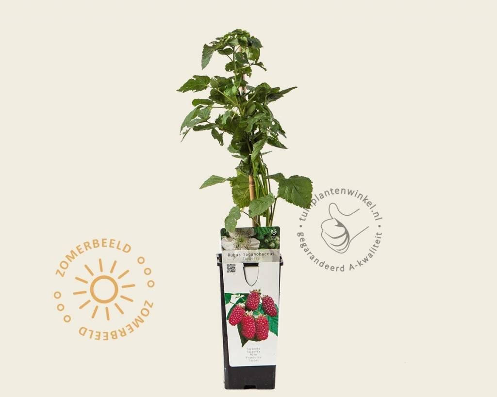 De Rubus 'Tayberry' is ontstaan uit een kruising van een braam en een framboos en ook wel bekend als Braamboos of Frambraam. Deze plant bloeit in juni met witte bloemen. De vruchten groeien in trossen en zijn een stuk langer en groter dan die van een gewone braam of framboos. De Frambraam geeft vrij zoete, rode vruchten in juli en augustus. De Tayberry maakt lange ranken die het best geleid kunnen worden langs een hek of draad.