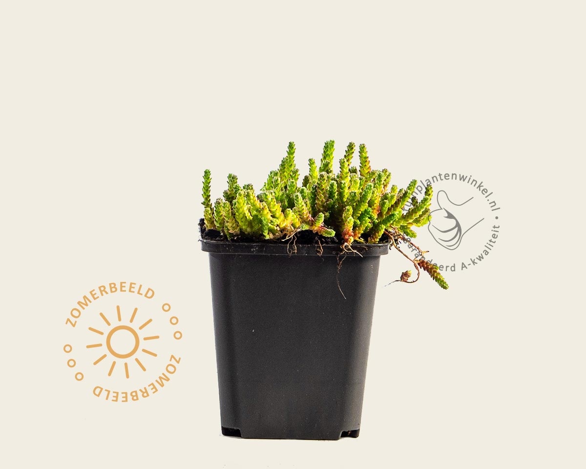Sedum acre is een inheemse plant, die vaak in duinen, langs wegen en op stoepen groeit. Muurpeper(komt aan zijn naam door de sterke smaak van de blaadjes) valt in juni en juli op met zijn felgele bloemetjes, die mooi afsteken tegen de frisgroene bladeren. Sedum acre is een zeer laag blijvende, bodem bedekkende plant met liggende stengels, die zich snel kunnen uitbreiden. De plant is goed winterhard en behoudt in zachte winters zijn bladeren.