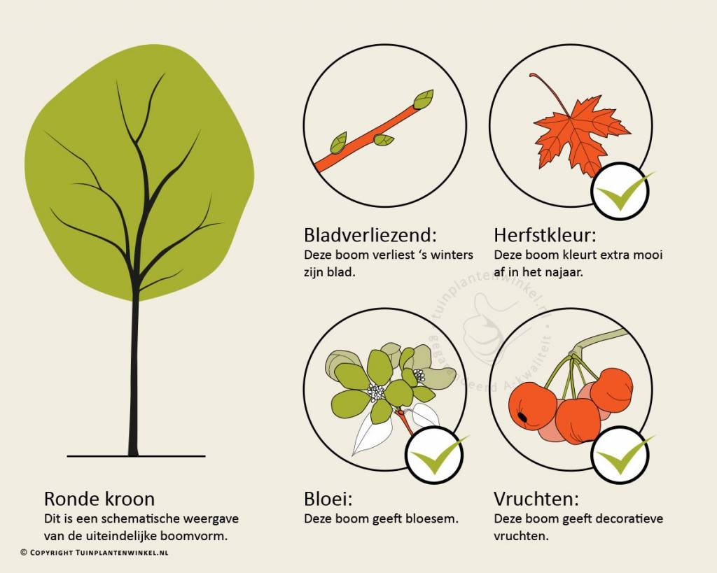 Bomen van tuinplantenwinkel.nl kunt u jaarrond planten. Dit kan omdat we al onze bomen in pot leveren. Aanplanten in de herfst, winter, lente én zomer is dus altijd mogelijk, met aangroeigarantie!