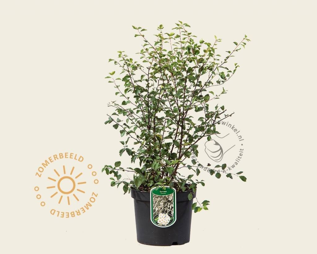 De Spiraea vanhouttei planten zitten in een 19 cm pot. Het product verpakken we zo goed mogelijk in dozen zodat deze tijdens de bezorging niet beschadigen.