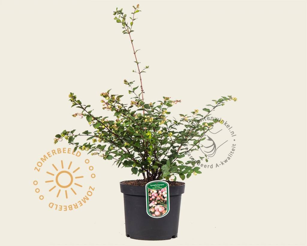 Symphoricarpos x doorenbosii 'Mother of Pearl' bloeit in juni t/m augustus met witte, klokvormige bloemen en krijgt prachtige wit-roze bessen in de herfst, die nog lang aan de tuinplant blijven hangen, mede omdat de vogels er geen trek in hebben. Het is een ideale tuinplant voor vakbeplanting in openbaar groen, maar ook als solitair onder hogere struiken en bomen. Symphoricarpos x doorenbosii 'Mother of Pearl' is bladverliezend, winterhard.