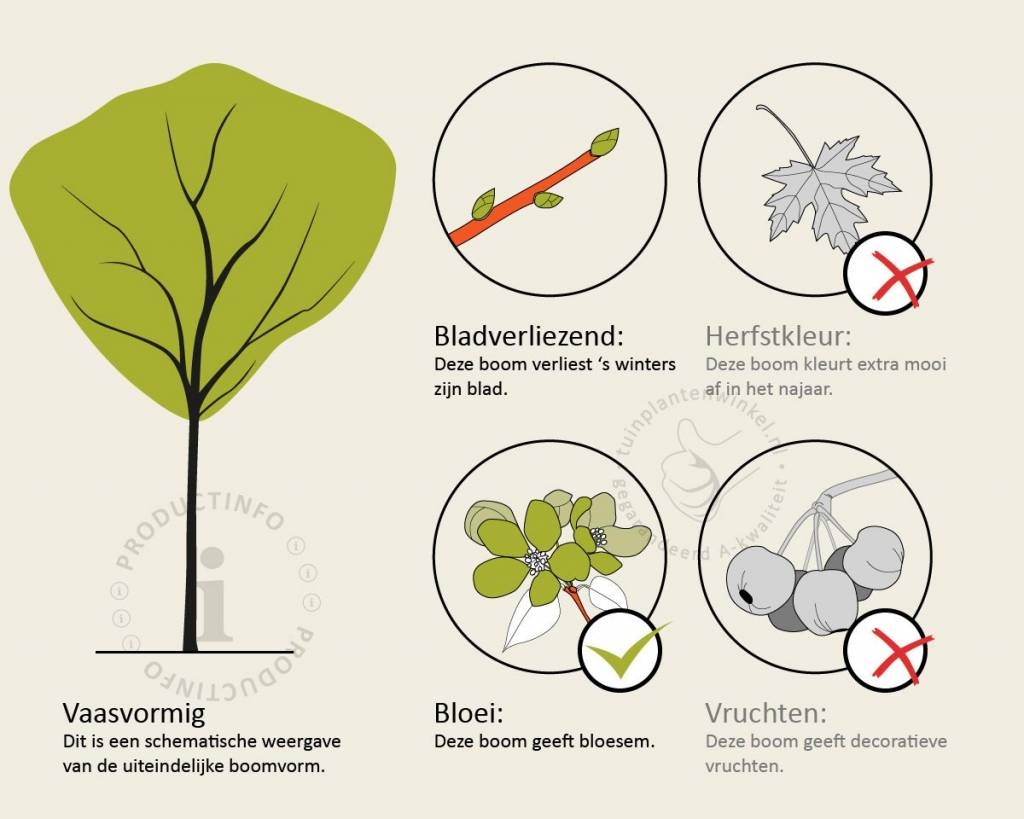 Bomen van tuinplantenwinkel.nl kunt u jaarrond planten. Dit kan omdat we al onze bomen in pot leveren. Aanplanten in de herfst, winter, lente én zomer is dus altijd mogelijk, met aangroeigarantie!