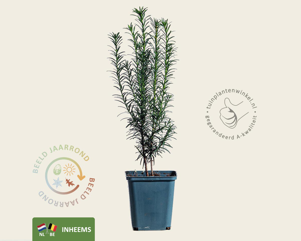 Deze potgekweekte Taxus baccata is het hele jaar door aan te planten. Dus zowel in de lente, zomer, herfst als winter.