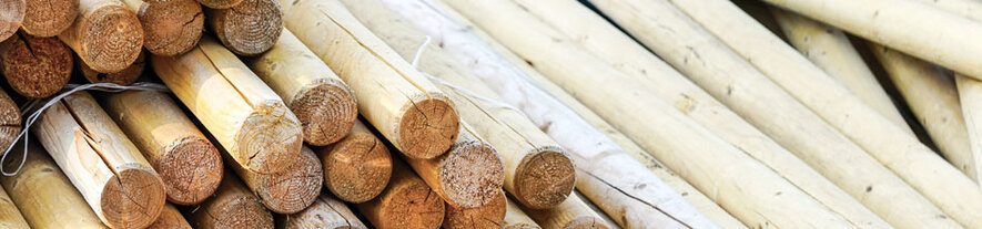 Boompalen zijn van hout en hebben een punt zodat ze makkelijk de grond in gaan.
