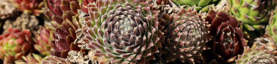 Sempervivum is er in vele soorten en kleuren van klein tot grof en kan in pot of volle grond. Zorg in de wintermaanden voor een droge standplaats om rotting van de rozetten te voorkomen.