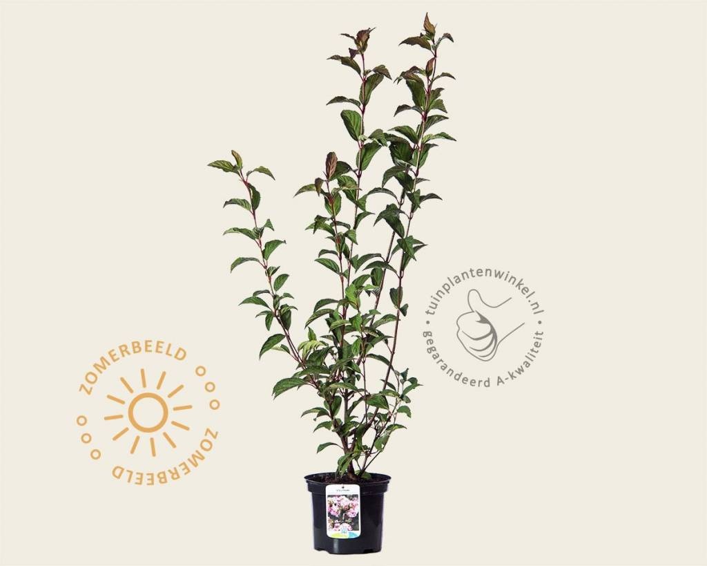 De Viburnum bodnantense Charles Lamont kan uitgroeien tot een flinke plant. De uiteindelijke hoogte van de Viburnum bodnantense Charles Lamont is ongeveer 250 cm, maar hier heeft de plant wel een aantal jaar voor nodig. Wilt u meteen over een flinke struik beschikken, dan kunt u ervoor kiezen om voor de XL+ variant te gaan. Tuinplantenwinkel.nl heeft namelijk meerdere maten in het assortiment.