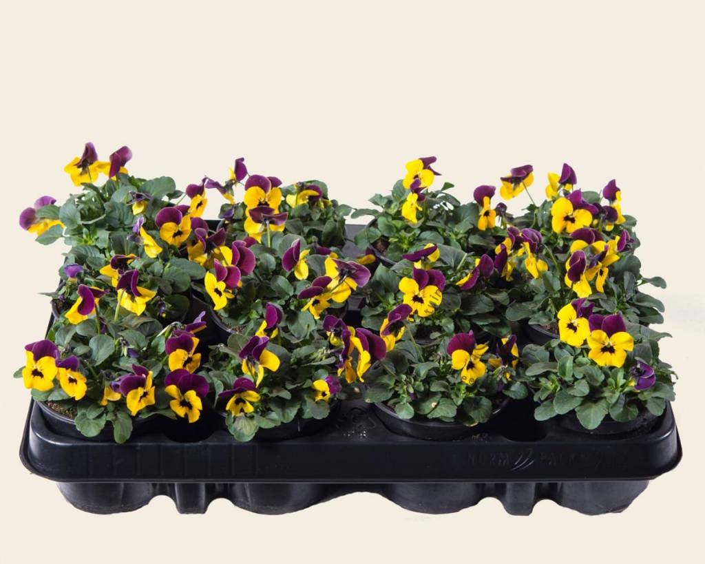 Viool Mini Rood-Geel - met oog is een éénjarige najaars-/voorjaarsbloeier. Dit miniviooltje bloeit van oktober t/m mei met rood - gele bloemen met oog, wordt uiteindelijk ongeveer 10 cm hoog en staat bij voorkeur in de zon - halfschaduw.