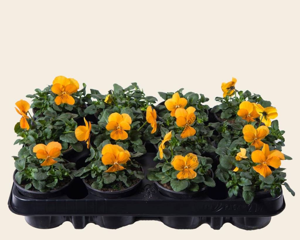Viool Mini Geel effen is een éénjarige najaars-/voorjaarsbloeier. Dit miniviooltje bloeit van oktober t/m mei met oranje bloemen, wordt uiteindelijk ongeveer 10 cm hoog en staat bij voorkeur in de zon - halfschaduw.