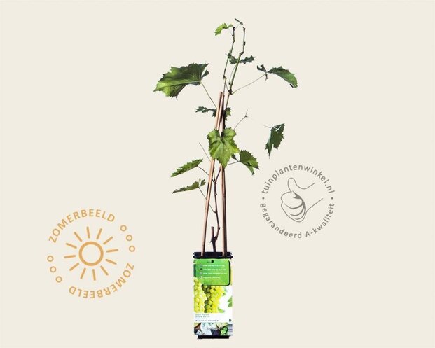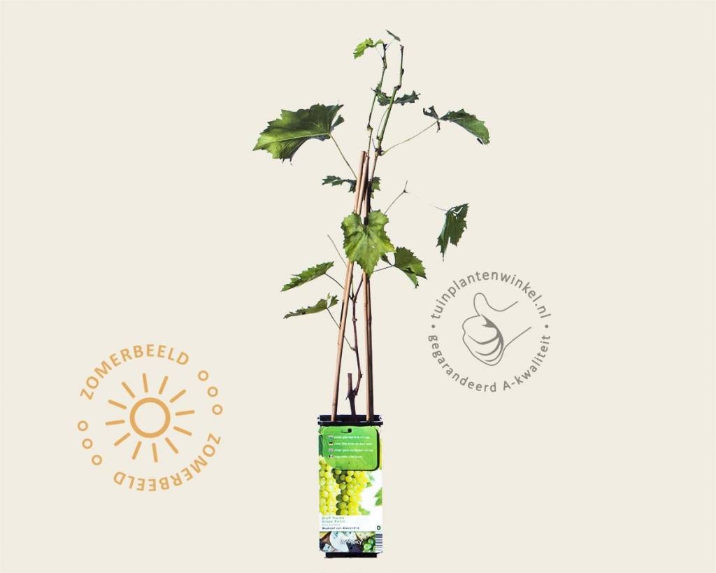 Vitis vinifera 'Muskaat van Alexandrië' is een wit druivenras dat in de winkel aangeboden wordt. De tuinplant heeft een warme standplaats nodig en doet het vooral goed in de kas. De zoete smaak is heerlijk. Daarnaast is het een prima wijndruif. De tuinplant bloeit onopvallend in het voorjaar, in de zomer vormen zich de trosjes die aan het eind van de zomer in augustus rijp zijn en geoogst kunnen worden. Hoe meer zon des te groter de oogst!